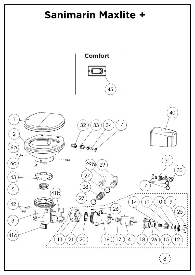 Les pièces détachées ci-dessous sont uniquement compatibles avec les Sanimarin Maxlite + fabriqués à partir de xx/xx/20xx.
