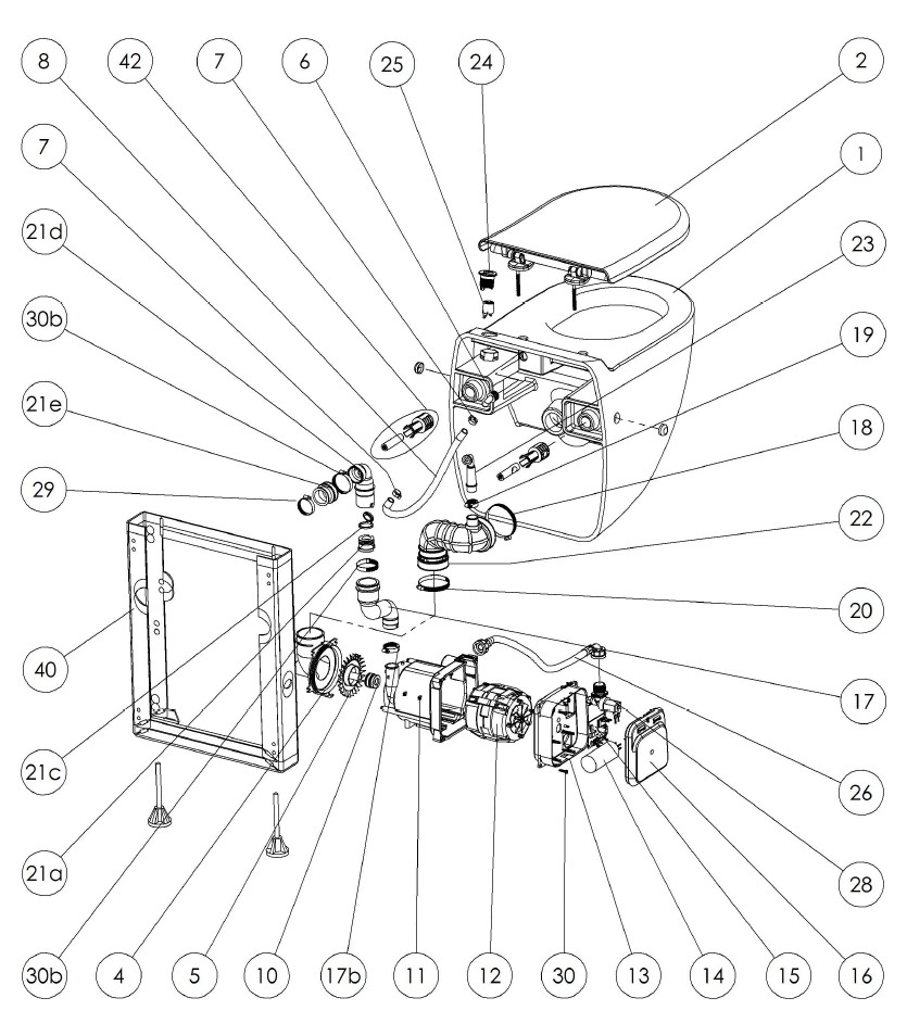 Les pièces détachées ci-dessous sont uniquement compatibles avec les Sanicompact® Comfort Silence ECO+ fabriqués à partir de 01/01/2010.